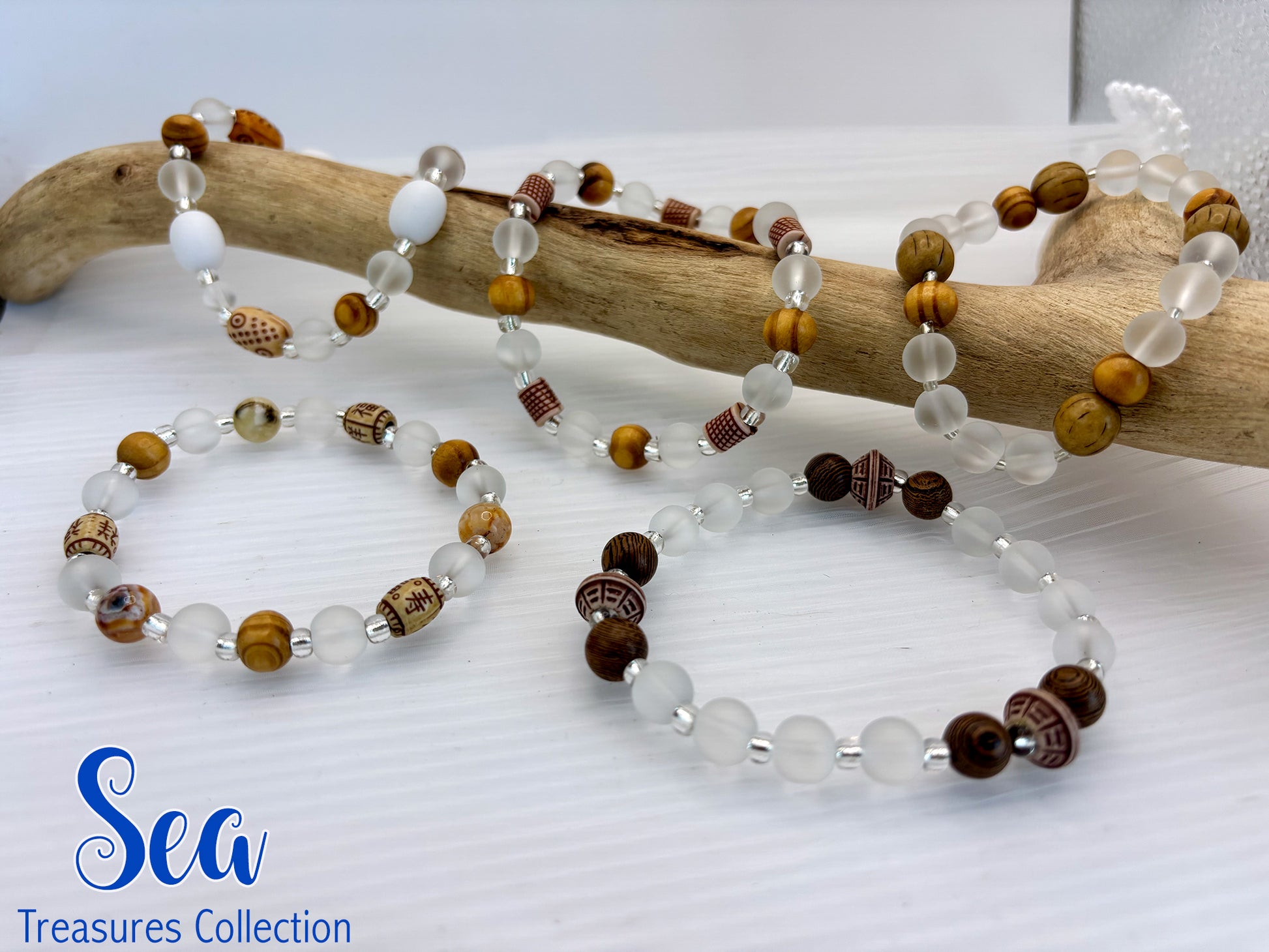 Boho Style Bracelets, a stunning collection featuring unique designs crafted from natural wood beads and elegant frosted glass beads.